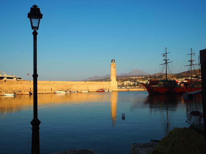 Keywords: holidays mediterranean rethymnon lighthouse port crete ship abendstimmung lantern