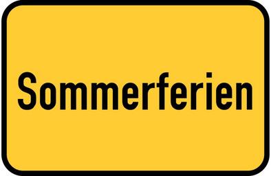 Keywords: holidays summer vacation begin beginning relaxation school education town sign city limits sign entry sign gateway sign road sign street sign directory yellow germany german direction