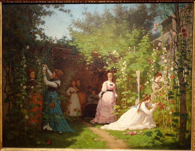 Keywords: Hollyhocks by Eastman Johnson, 1876, oil on canvas - New Britain Museum of American Art - DSC09340.JPG en Exhibit in the New Britain Museum of American Art New Britain Connecticut USA This artwork is in the public domain because the artist died more than 70 years ago The museum permitted photographs of this exhibit without restriction 2013-06-27 12 31 32 own Daderot PD-old-70-1923 cc-zero Paintings in the New Britain Museum of American Art Uploaded with UploadWizard Paintings by Eastman Johnson Paintings of gardens |