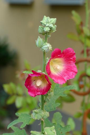 Keywords: hollyhocks flower garden close flower blossom bloom garden