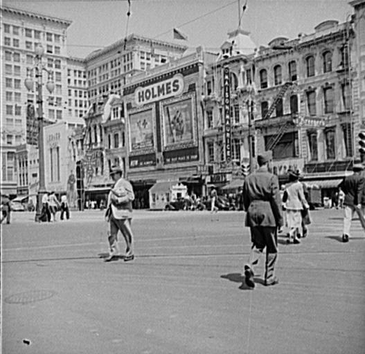 Keywords: HolmsesVachonA.jpg New Orleans Louisiana 1943 View on Canal Street with the D H Holmes department store fascade covered with large advertisements urging support for the World War II effort Photograph by John Vachon via Library of Congress website at http //www loc gov/pictures/item/owi2001024218/PP/ Converted from tif to jpg and border cropped before uploading 1943-03 Creator John Vachon PD-USGov Similar view Image HolmsesVachonB jpg 1943 in New Orleans John Vachon D H Holmes Black and white photographs of Canal Street New Orleans CBD |