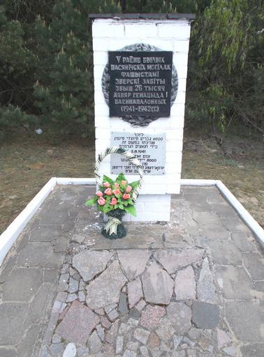 | Keywords: Holocaust in Pinsk 3d-2.jpg ru Памятник в айоне бывшей де евни Посеничи Посяничи на ок аине Пинска на месте массовых убийств ев еев Пинска и военнопленных в 1941-42 годах а этом месте были убиты 8000 ев еев-мужчин из Пинска аходится на выезде из Посенич в нап авлении Пинска по до оге Р6 слева от шоссе пе ед де евней Галево 2014-05-09 15 45 52 own Avner 52 10 09 8 N 26 05 21 5 E heading E cc-zero Uploaded with UploadWizard Ghetto Pinsk Holocaust in Pinsk | ||||