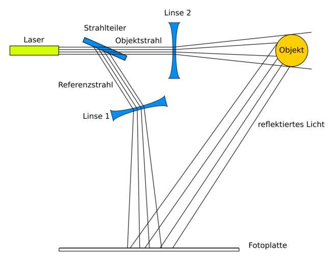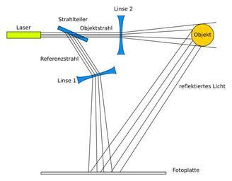 Keywords: Hologramm aufnahme.svg Das Bild zeigt schematisch wie ein Hologramm aufgenommen wird Dieses Bild wurde von Heidemarie Knobloch erstellt unter der Vorlage Image Hologramm_aufnahme png von Michael Ewinger 2007-11-03 own assumed Heidemarie Knobloch~commonswiki Holography |