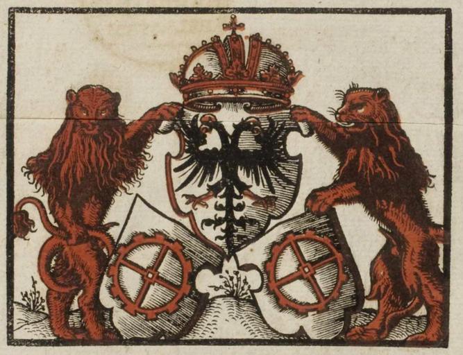 Keywords: Holtzkunst 1563 03a.jpg Detail vom Titelblatt Wappen von Mühlhausen im Elsass H B Verzeichnuß der figuren vnnd neuwen öfen / von der ersparung der neuwen erfundenen Holtzkunst Mülhausen im oberen Elsäß Schmid 1563<br />HAB Wolfenbüttel http //diglib hab de/drucke/o-92-2f-helmst/start htm 1563 žH B Author died more than 70 years ago - public domain PD-old-100 Holtzkunst 1563 Symbols of Mulhouse |