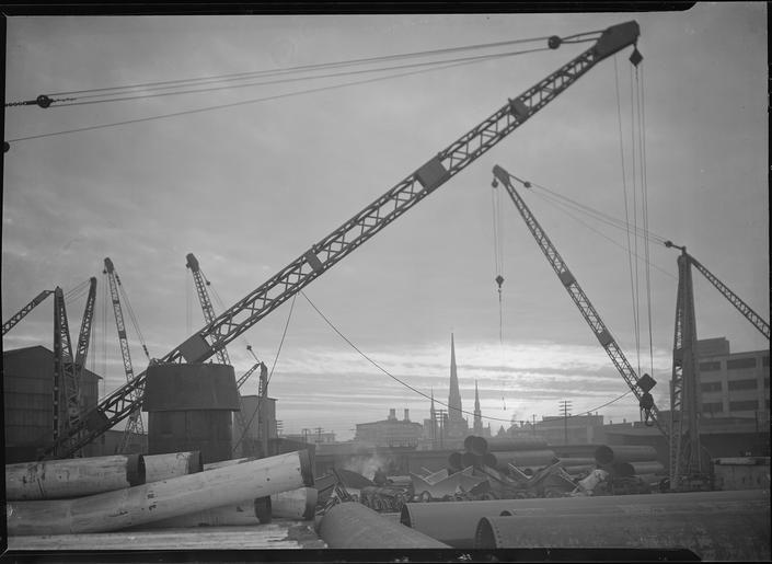 | Keywords: Holyoke, Massachusetts - Scenes - NARA - 518292.tif Scope and content Mt Holyoke Massachusetts - Scenes A Holyoke firm in steel plate fabrication since 1888 now in process of re-organization; bought in from the original founders by a superintendent now in the hands of the son; the morning after big snow in upper Vermont rolls out and starts North for delivery great snowplows marked Holyoke All Steel A second Holyoke firm grey iron foundry and machine shop antecedent to paper industries once made water wheels now buys electric power Business still in hands of the founders sons French Canadian locality showing one tenement The site of the first French Canadian church 1869 wiped out by a conflagration which burnt seventy-five people at verspers and made heroes of priests and firemen; replaced in 1875 with this edifice convent and school; open at dusk when a machinist leaving the day shift can stop for prayers Walsh Holyoke Steam Boiler Works Jolly Inc - Church of the Precious Blood General notes 518292 Local identifier 69-RP-1 Federal Works Agency Work Projects Administration National Research Project ca 1941 - ca 1942 NARA-Author Hine Lewis Wickes 1874-1940 Photographer 1122914 <br /> Still Picture Records Section Special Media Archives Services Division NWCS-S National Archives at College Park 8601 Adelphi Road College Park MD 20740-6001 1936 - 1937 Record group Record Group 69 Records of the Work Projects Administration 1922 - 1944 Record group ARC 398 Lewis Hine Photographs for the National Research Project compiled 1936 - 1937 Series ARC 518291 File unit File unit ARC Variant control numbers NAIL Control Number NWDNS-69-RP-1 yes Other versions <gallery> File Mt _Holyoke _Massachusetts_-_Scenes_-_NARA_-_518292 tif tif File Mt _Holyoke _Massachusetts_-_Scenes_-_NARA_-_518292 jpg jpg </gallery> NARA-cooperation PD-USGov NARA TIF images with categorized JPGs Massachusetts |
