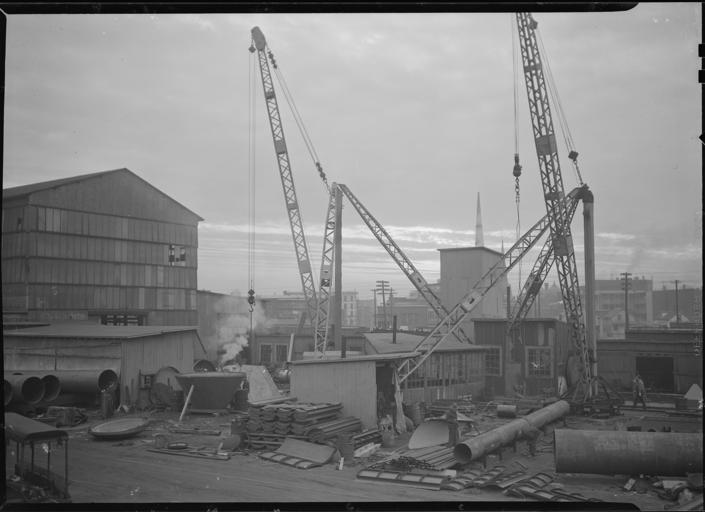 | Keywords: Holyoke, Massachusetts - Scenes - NARA - 518294.jpg Scope and content Mt Holyoke Massachusetts - Scenes A Holyoke firm in steel plate fabrication since 1888 now in process of re-organization; bought in from the original founders by a superintendent now in the hands of the son; the morning after big snow in upper Vermont rolls out and starts North for delivery great snowplows marked Holyoke All Steel A second Holyoke firm grey iron foundry and machine shop antecedent to paper industries once made water wheels now buys electric power Business still in hands of the founders sons French Canadian locality showing one tenement The site of the first French Canadian Church 1869 wiped out by a conflagration which burned seventy-five people at vespers and made heroes of priests and firemen; replaced in 1875 with this edifice convent and school; open at dusk when a machinist leaving the day shift can stop for prayers Walsh Holyoke Steam Boiler Works Jolly Inc - Church of the Precious Blood General notes 518294 Local identifier 69-RP-3 Federal Works Agency Work Projects Administration National Research Project ca 1941 - ca 1942 NARA-Author Hine Lewis Wickes 1874-1940 Photographer 1122914 <br /> Still Picture Records Section Special Media Archives Services Division NWCS-S National Archives at College Park 8601 Adelphi Road College Park MD 20740-6001 1936 - 1937 Record group Record Group 69 Records of the Work Projects Administration 1922 - 1944 Record group ARC 398 Lewis Hine Photographs for the National Research Project compiled 1936 - 1937 Series ARC 518291 File unit File unit ARC Variant control numbers NAIL Control Number NWDNS-69-RP-3 Other versions <gallery> File Mt _Holyoke _Massachusetts_-_Scenes_-_NARA_-_518294 tif tif File Mt _Holyoke _Massachusetts_-_Scenes_-_NARA_-_518294 jpg jpg </gallery> NARA-cooperation PD-USGov Holyoke Massachusetts Factories in Massachusetts Massachusetts in the 1930s NARA images of Massachusetts Black and white photographs of Massachusetts |