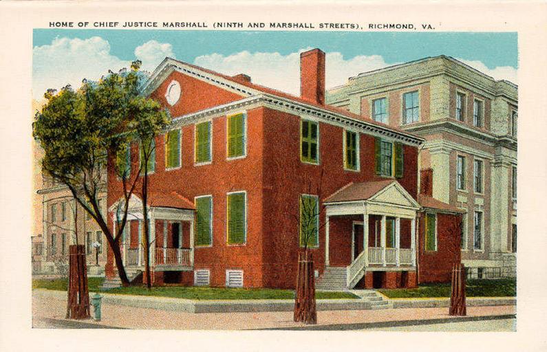 | Keywords: vcu libraries vculibraries vcu digital collections vcudigitalcollections photo border outdoor architecture building text drawing Description: Situated on the N.W. Corner of Ninth and Marshall Streets, in the same square with the new 'John Marshall High School.' It was built by Chief Justice (then General) Marshall and occupied by him from 1795 until his death in 1835. Manufacturer: Gray Line Motor Tours, Richmond, Va. Date Postmarked: Not postmarked. Rights: This item is in the public domain. Acknowledgement of the Virginia Commonwealth University Libraries as a source is requested. Reference URL: dig.library.vcu.edu/u?/postcard,596 Collection: Rarely Seen Richmond: Early twentieth century Richmond as seen through vintage postcards Description: Situated on the N.W. Corner of Ninth and Marshall Streets, in the same square with the new 'John Marshall High School.' It was built by Chief Justice (then General) Marshall and occupied by him from 1795 until his death in 1835. Manufacturer: Gray Line Motor Tours, Richmond, Va. Date Postmarked: Not postmarked. Rights: This item is in the public domain. Acknowledgement of the Virginia Commonwealth University Libraries as a source is requested. Reference URL: dig.library.vcu.edu/u?/postcard,596 Collection: Rarely Seen Richmond: Early twentieth century Richmond as seen through vintage postcards |