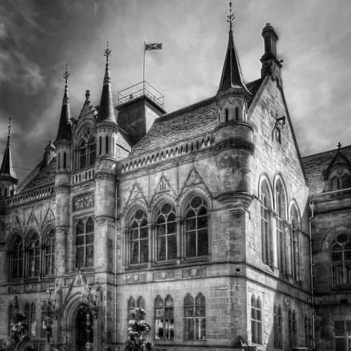 Keywords: home old architecture villa scotland building old building black and white haunted castle haunted house