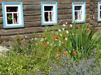 Keywords: home wood russia historically historic home building bar window garden flowers summer poppy