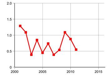 | Keywords: Homicide Rate in Bahrain.svg en Homicide rate per 100 000 in Bahrain Data taken from http //www indexmundi com/facts/bahrain/homicide-rate 2016-08-18 own Delphi234 other versions current annually Generated with Wikimedia SVG Chart SVG Chart/box cc-zero Homicide rates Diagrams labelled with numbers only |
