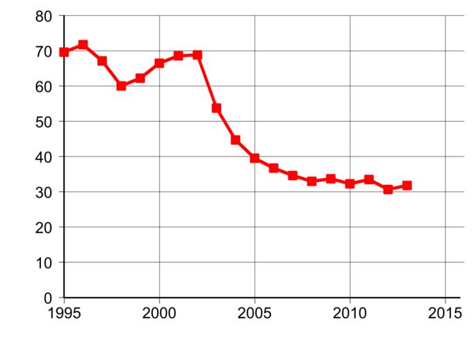 | Keywords: Homicide Rate in Colombia.svg en Homicide rate per 100 000 in Colombia Data taken from http //www indexmundi com/facts/colombia/homicide-rate 2016-08-17 own Delphi234 other versions current annually Generated with Wikimedia SVG Chart SVG Chart/box cc-zero Homicide rates Crime in Colombia Diagrams labelled with numbers only |
