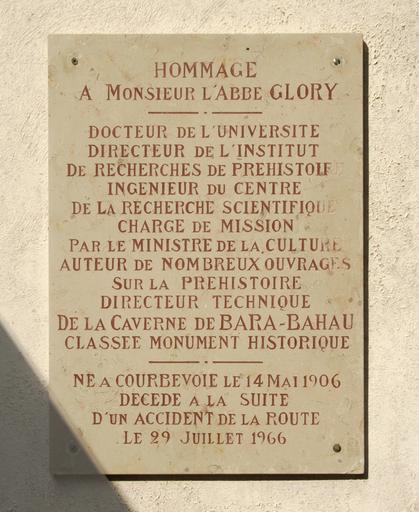 Keywords: Hommage abbé Glory Bara Bahau.jpg André Glory à l'entrée de la grotte de Bara-Bahau au Bugue en Dordogne en Tribute to Abbot André Glory at the entrance of the Bara-Bahau prehistoric cave in Le Bugue Dordogne France 2011-08-04 own Jebulon 44 55 25 8 N 0 55 17 3 E cc-zero Uploaded with UploadWizard Plaques in Dordogne Paleontologists from France Prehistorians 1906 births 1966 deaths |