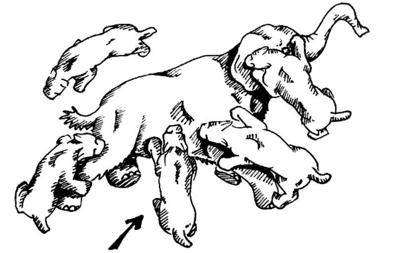Keywords: Homotherium shearing bite grouping.PNG en a diagram of a group of feline machairodont Homotherium individuals using the shearing bite hpythesis to wound a prey animal i have no scanner at my disposal so i used a samsung camera to take a picture of the drawing created with an ultrafine sharpie and a sheet of standard printing paper from there it was uploaded the contrast and brightness modified to be as clear as it was on the sheet origionally and uploaded here own Coluberssymbol Cc-zero Homotherium