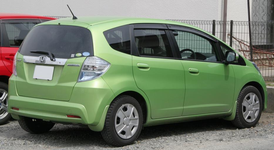 Keywords: Honda Fit Hybrid rear.jpg en Honda Fit Hybrid own TTTNIS 2011-04-07 Cc-zero Honda Fit II Hybrid Green hatchbacks Taken with Canon EOS 20D Taken with Canon EF-S 17-85mm F4-5 6 IS USM