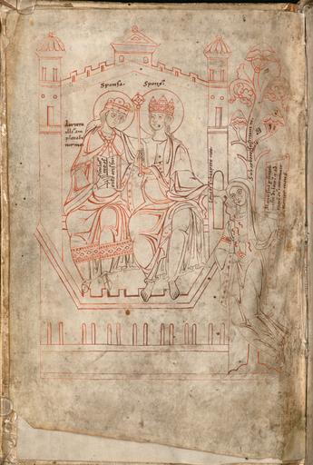 | Keywords: Honorius Augustodunensis Opera exegetica 6.png en Christ and his bride This manuscript of works by Honorius Augustodunensis also seen as Honorius of Autun is one of the rare examples of an illustrated commentary on the Old Testament Song of Songs preserved mainly in manuscripts from southeastern Germany and Austria The manuscript written in the monastery of Benediktbeuern Bavaria around 1170 features a title piece and three miniatures on books two to four that is the full cycle of illuminations Honorius follows the allegorical interpretation of the marriage of Christ and his Church depicted in the title piece In books two to four the allegorical marriage is followed through four epochs ante legem before the law represented by the daughter of Pharaoh; sub lege under the law represented by the daughter of Babylon; sub gratia under grace represented by Sunamitis i e the unnamed Shulamite woman to whom Solomon professes his love in the Song of Songs ; and sub antichristo under the anti-Christ represented by Mandragora In accordance with Honorius's text the bride appears in dual form as Ecclesia the Church in the New Jerusalem and as a personification of the Church remaining in this world which embodies all mankind Honorius was a theologian and philosopher who was active in southern Germany in the first third of the 12th century 1150 1175 http //www wdl org/en/item/13452/ World Digital Library author other versions PD-Art Uploaded with UploadWizard Honorius Augustodunensis Opera exegetica |