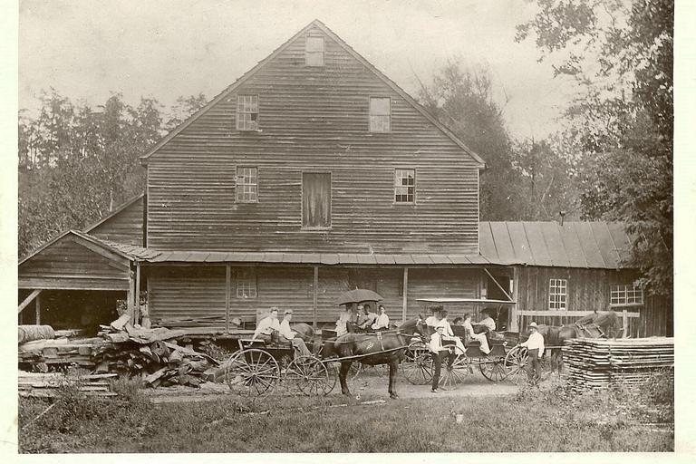 | Keywords: Hooks Mill 1903.jpg en Hooks Mills West Virginia 1903 -- Saw and lunmber mill waterpower on left; grain ground on imported stones from France; post office on the right Flour ground from wheat at the mill stored on the second floor hay stored on the third floor Henson Hook the mill owner dressed in whote shirt with hand on front wheel of wagon Capon Bridge Museum Roberta Munske Author 1903 Author owns the image Author's possession PD-old Hooks Mills West Virginia Sawmills in the United States Flour mills in the United States West Virginia in the 1900s Wooden buildings in West Virginia Black and white photographs of West Virginia |