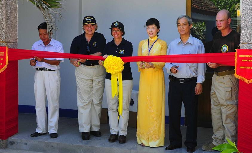 | Keywords: Hope Center ribbon cutting DVIDS289345.jpg en Commander of Pacific Partnership 2010 Capt Lisa M Franchetti and Commander Navy Medicine West and Naval Medical Center San Diego Rear Adm Christine M Bruzek-Kohler prepare to cut a ribbon marking the completion and opening of the Hope Center school one of four engineering projects in Quy Nhon Vietnam in support of Pacific Partnership 2010 The Military Sealift Command hospital ship USNS Mercy is in Vietnam conducting the fifth in a series of annual U S Pacific Fleet humanitarian and civic assistance endeavors to strengthen regional partnerships 2010-06-10 Petty Officer 3rd Class Matthew Jackson https //www dvidshub net/image/289345 100610-N-+++++-110 2010-06-12 16 15 USNS MERCY AT SEA PD-USGov-Military-Navy USNS Mercy T-AH-19 Pacific Partnership 2010 Images from DoD uploaded by Fæ Christine Bruzek-Kohler Lisa M Franchetti |
