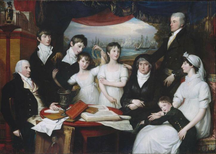 Keywords: Hopefamily.GIF oil canvas cm 183 2 258 44 Institution Museum of Fine Arts Boston accession number object history credit line Painted about 1804 in London when the family was in exile from French invading forces in Amsterdam Ann Goddard was the apple of Henry's eye until she started an affair with Baron van Dopff This painting was partially to repair her marriage and it didn't work As soon as Henry died she moved in with Dopff When John Williams died she married Dopff Henry is pointing to the ashes of John Goddard his brother-in-law and business associate and above his head rests a model of Welgelegen http //www mfa org/collections/object/the-hope-family-of-sydenham-kent-31279 PD-old-100 19th-century family portraits Portraits by Benjamin West Portrait paintings in the Museum of Fine Arts Boston 1800s portrait paintings Paviljoen Welgelegen Henry Hope Portraits with image of family member Hope Co |