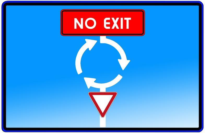 Keywords: hopelessness output exit emergency exit note traffic sign shield warning psychology circuit problem attention located in the circle turn hopeless warning signs