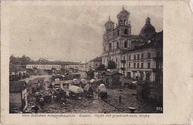 | Keywords: Horadnia, Stary Rynak-Kalučynskaja. Горадня, Стары Рынак-Калючынская (1917).jpg Го адня Horadnia пляц Ста ы Рынак plac Stary Rynak у боку вуліцы Калючынскай vulica Kalučynskaja www meshok ru author 1917 PD-old-70 History of Hrodna Postcards of Hrodna Church of Saint Francis Xavier Hrodna 20th-century postcards of Belarus Savieckaja Square Hrodna | ||||