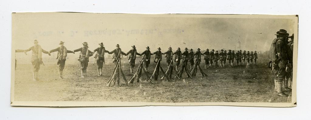 Keywords: Infantry lining up for camp work at the Maneuver grounds, Ft. Sam Houston usarmy sanantoniotexas fortsamhouston riflestack