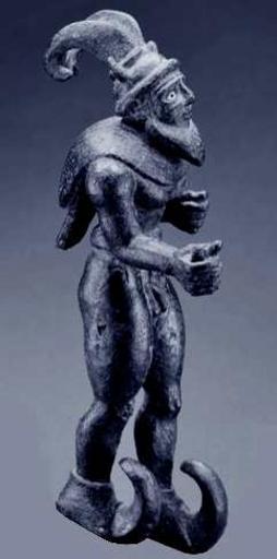 | Keywords: Horned deity.jpg en Ancient Near Eastern copper statuette of an unknown horned deity with corresponding pointy shoes proto-Elamite 3000-2800 B C 2011-06-28 own Camocon cc-zero Uploaded with UploadWizard Horned God Horned helmets Proto-Elamite art |