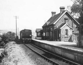 Keywords: 50 40N 1 14W Horringford railway station, 1955, was an intermediate station situated on the edge of Horringford village on the line from Newport to Sandown incorporated by the Isle of Wight Railway. 1 February 1875 Opened. 6 February 1956 Closed. |