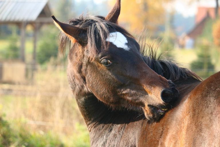 Keywords: horse brown thoroughbred arabian horse head autumn mane pasture pferdeportrait