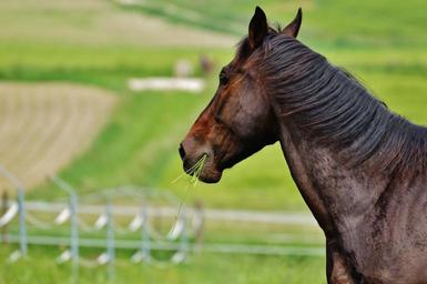 Keywords: horse coupling stallion eat paddock brown meadow pasture graze nature grass green