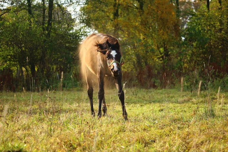 Keywords: horse foal dust pasture autumn rolling brown thoroughbred arabian pony brown mold young animal