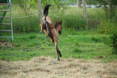 Keywords: horse foal suckling brown mold thoroughbred arabian high spirits buck jump pasture meadow