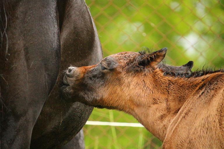 Keywords: horse foal suckling brown mold thoroughbred arabian horse head