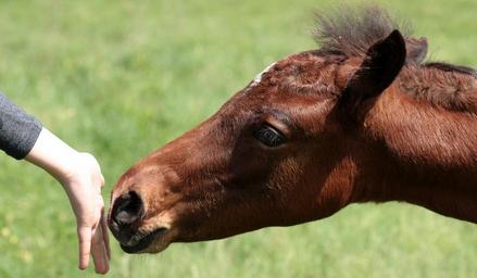 Keywords: horse food hand contact brown