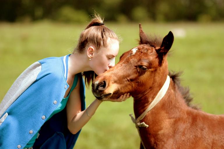 Keywords: horse girl kiss love pet equine meadow contact brown