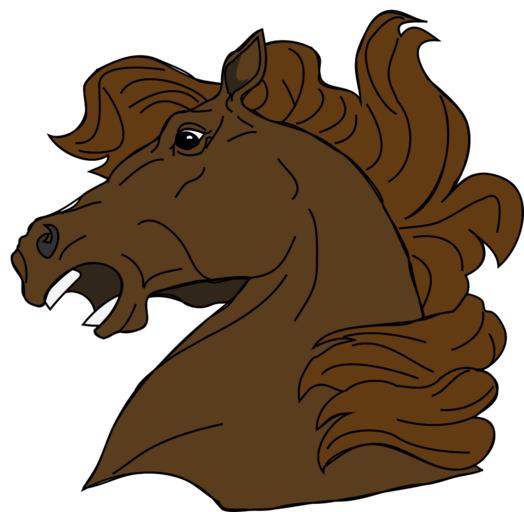 Keywords: horse head cartoon brown animal startled upset mad angry mane domestic mare rebellion farm animal