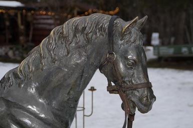 Keywords: horse horse head portrait sculpture animal animal figure metal putting the cart before halter reins