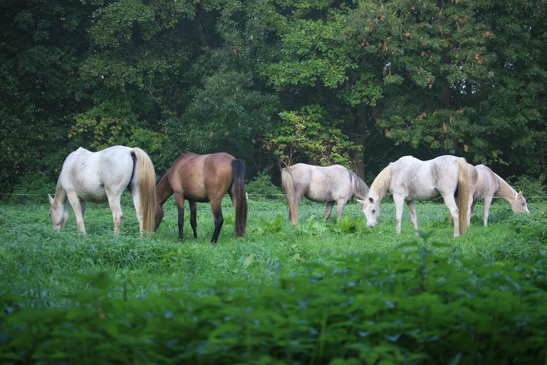 Keywords: horse mold thoroughbred arabian autumn fog pasture flock