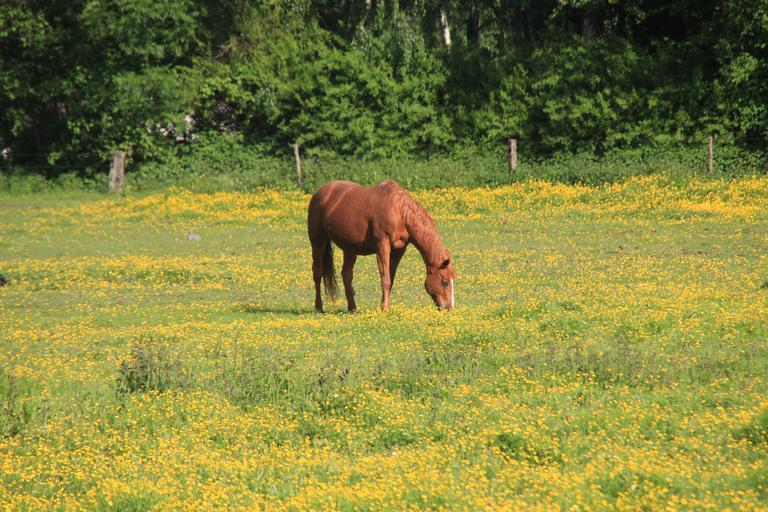 Keywords: horse ride reiter graze animals equestrian tournament brown mane pony meadow summer huf flower spring grass dandelion plant nature