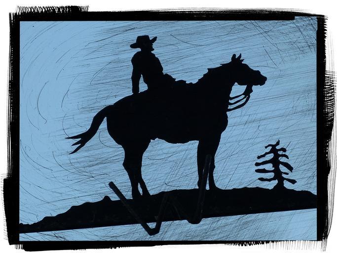 Keywords: horse rider relaxed cowboy silhouette metallic texture framed painting