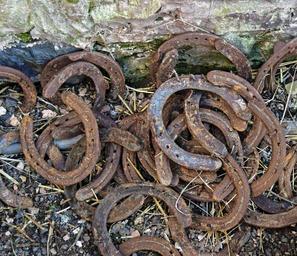 Keywords: horse shoes rusty horse horseshoe luck old metal iron curve dirty worn farm farmyard