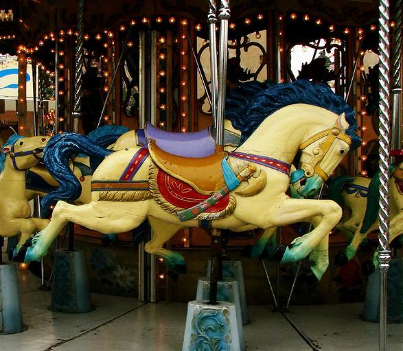 Keywords: horse wooden carousel retro nostalgic merry-go-round vintage colorful fun childhood