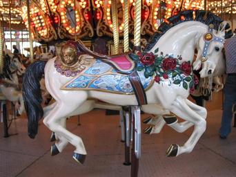 Keywords: horse wooden carousel retro nostalgic merry-go-round vintage colorful fun childhood