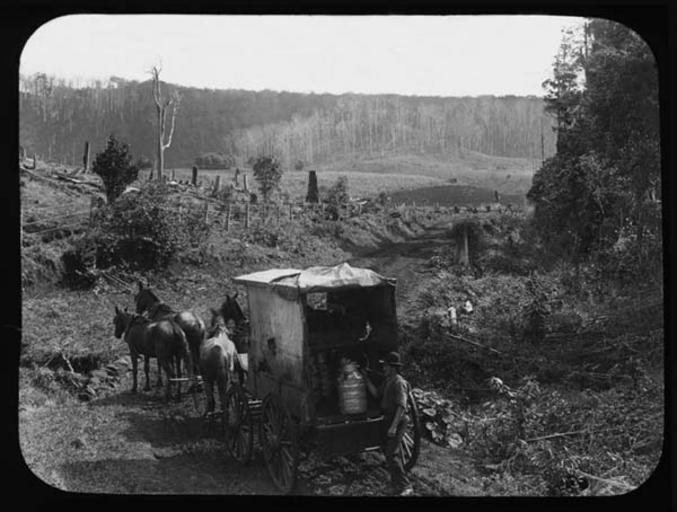 | Keywords: archives state records nsw staterecordsnsw newsouthwales blackandwhite horses wagons north coast northcoast mullumbimby milk milk across the commons milkacrossthecommons monochrome photo border outdoor black and white Milk being transported by horse drawn cart near Mullumbimby, North Coast (NSW) Dated: by 11/05/1908 Digital ID: 14086_a005_a005SZ844000005r Rights: www.records.nsw.gov.au/about-us/rights-and-permissions We'd love to hear from you if you use our photos. Many other photos in our collection are available to view and browse on our website using Photo Investigator. Milk being transported by horse drawn cart near Mullumbimby, North Coast (NSW) Dated: by 11/05/1908 Digital ID: 14086_a005_a005SZ844000005r Rights: www.records.nsw.gov.au/about-us/rights-and-permissions We'd love to hear from you if you use our photos. Many other photos in our collection are available to view and browse on our website using Photo Investigator. |