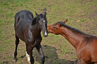 Keywords: horses flock coupling ride animals pasture brown graze wildlife mammal