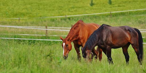 MAKE A MEME View Large Image horses for two coupling stallion eat paddock brown meadow pasture graze nature grass green play romp