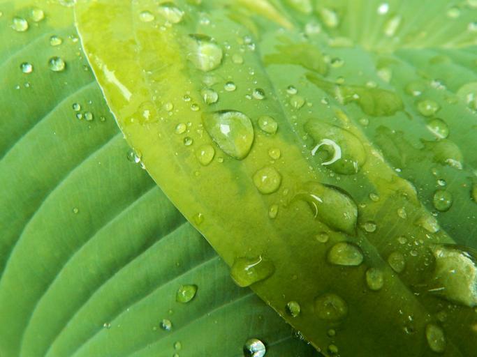 Keywords: hosta leaf flora nature gardening rain water green droplets raindrops liquid drops of water rain drops moist foliage plant garden
