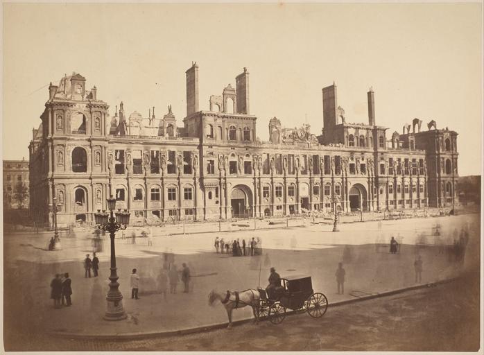 | Keywords: Hôtel de Ville after the Commune (original).jpg Locals and tourists alike gawked at the remains of the Paris city hall built beginning in 1532 and completed nearly a century later Along with treasured paintings and sculptural decoration historically precious archives of the City of Paris were forever lost when the building was set ablaze in May 1871 A reconstruction of the Hôtel de Ville begun in 1874 and completed a decade later stands on the same site today 1871 Albumen silver print from glass negative Institution Metropolitan Museum of Art object history exhibition history credit line The Elisha Whittelsey Collection The Elisha Whittelsey Fund 1959 190022030 accession number 59 600 59 PD-100 Uploaded with UploadWizard Destructions of the Hôtel-de-Ville during the Paris Commune 1871 in Paris Historical images of Hôtel de Ville de Paris West facade of Hôtel de Ville de Paris 19th-century photographs of Paris Images of Paris from the Metropolitan Museum of Art Photographs in the Metropolitan Museum of Art Photographs of Paris by Hippolyte-Auguste Collard 1871 photographs Horse-drawn vehicles in Paris subpage The Hötel de Ville after the Commune jpg |