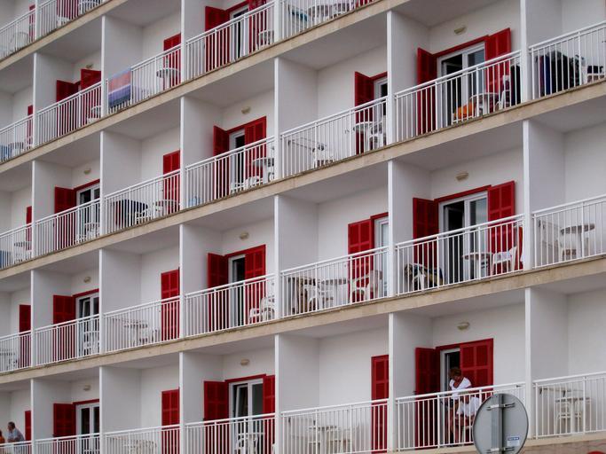Keywords: hotel front balconies red white housewife facade live architecture building residential buildings mallorca