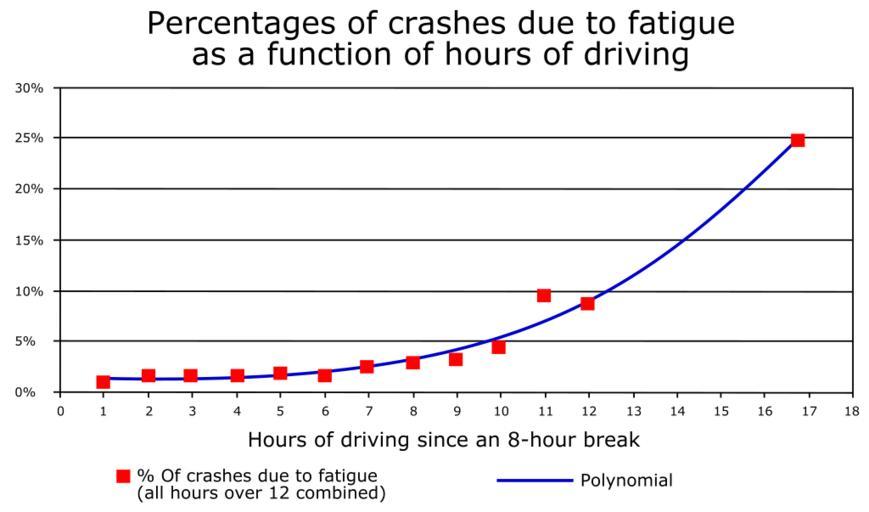 | Keywords: Hours of service FMCSA study.svg en Graph outlining the relationship between number of hours driving and incidents of crashes involving truck drivers in the United States All hours over 12 are combined due to the low number of sample data http //www fmcsa dot gov/rules-regulations/topics/hos/regulatory-impact-analysis htm FMCSA 2009-06-14 File Regulatory-impact-analysis-image012 gif Inkscape PD-USGov Hour | ||||