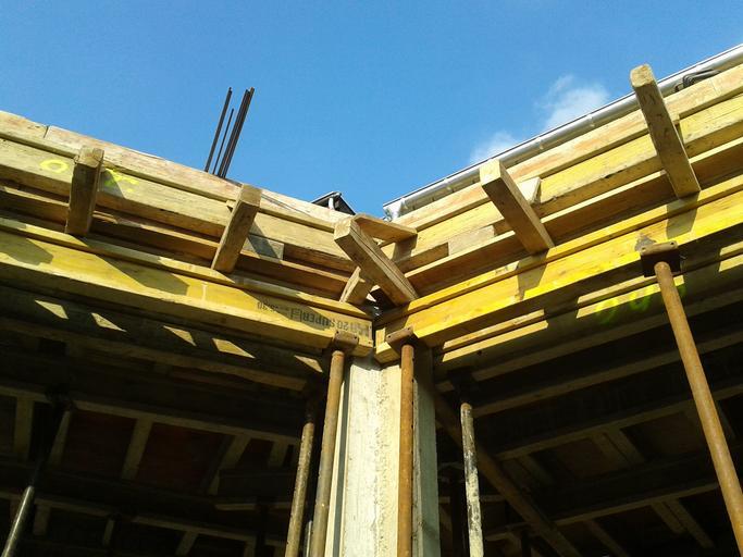 | Keywords: house construction site shell formwork maurer raw bauer construction metal supports boards formwork boards iron rests scaffold scaffolding construction work masonry concrete construction planning construction craft architecture flat roof concrete ceiling |